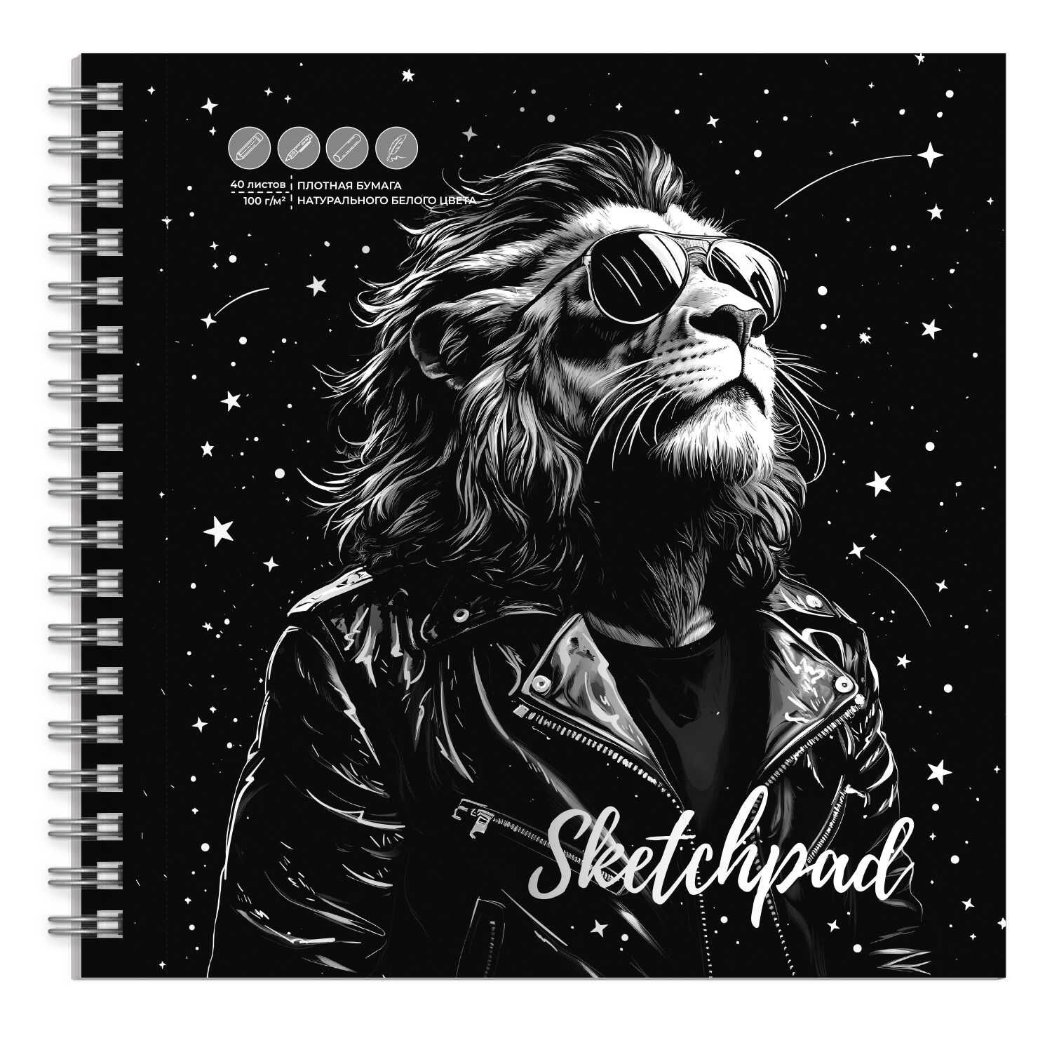 Скетчпад 195*195мм 40л., гребень, 100гр/м2 "Лев"