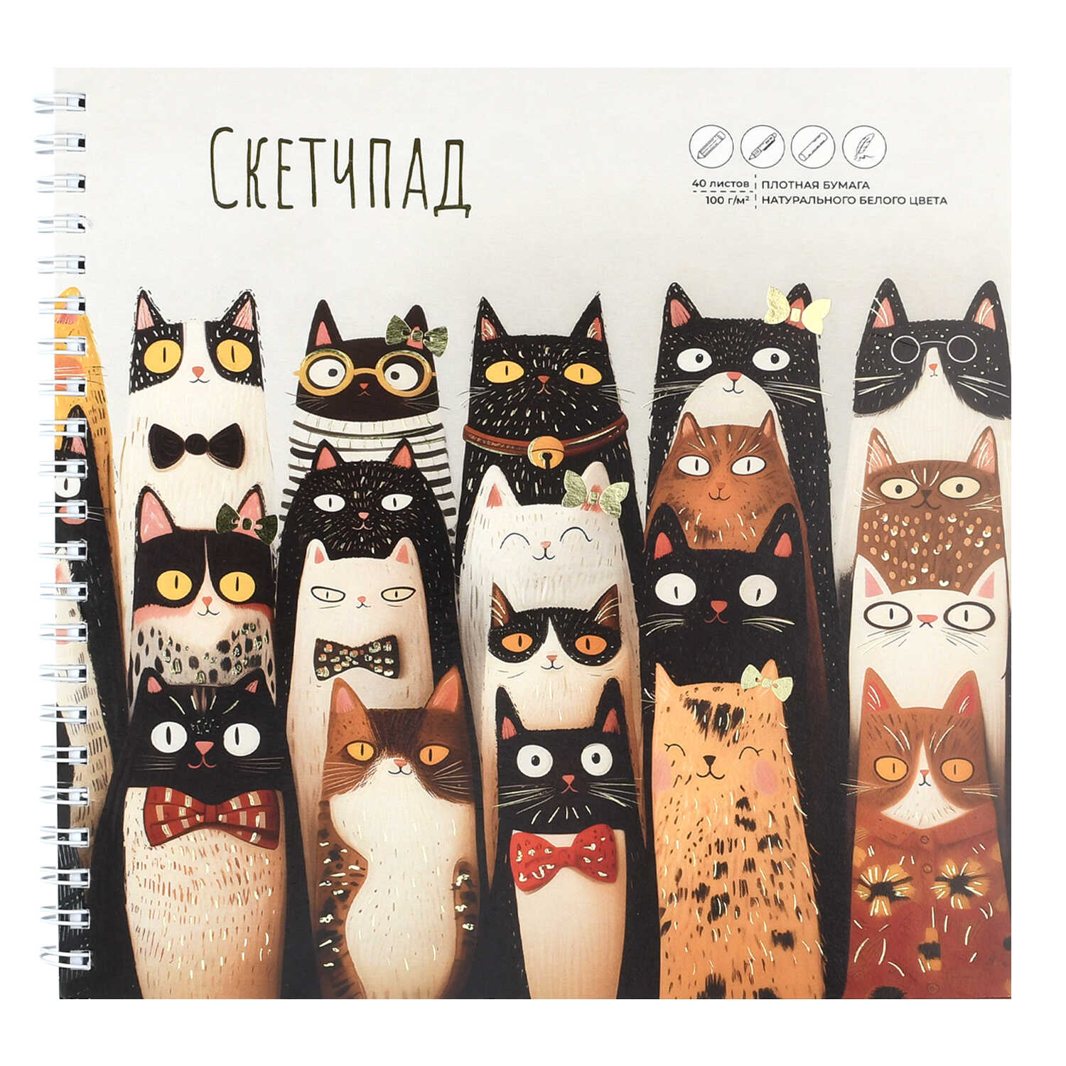 Скетчпад 195*195мм 40л., гребень, 100гр/м2 "Веселые коты"