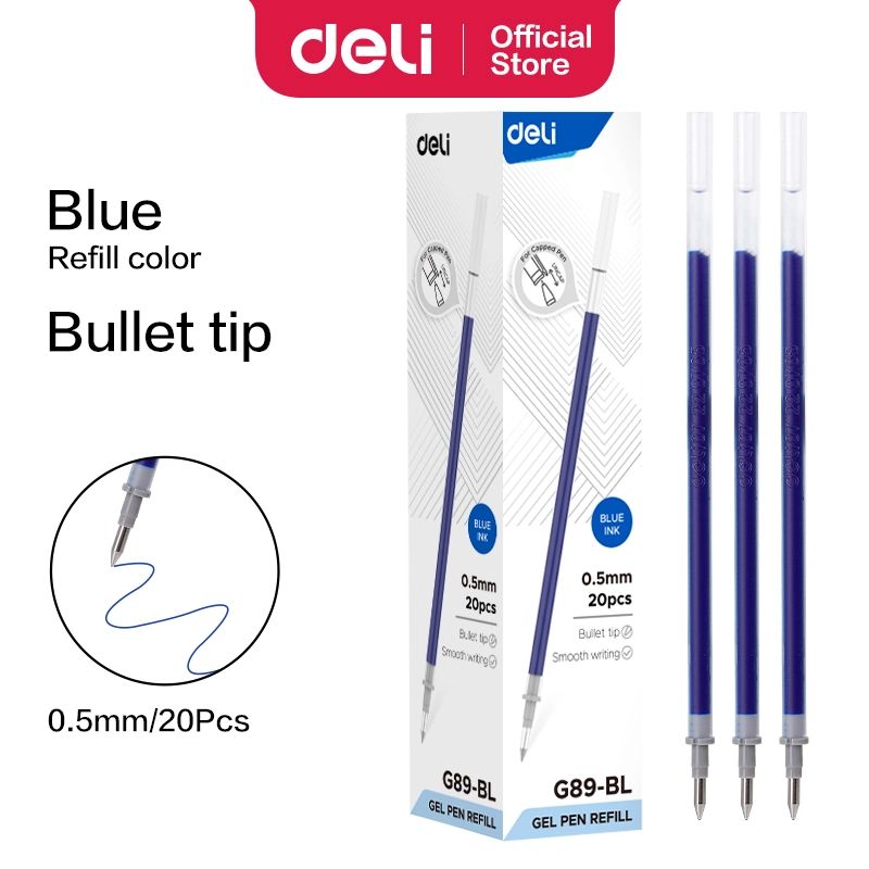 Стержень для гелевой ручки Deli EG89-BL, пулевидный наконечник 0,5 мм, чернила синие, подходит для E6600S, EG81, EG90, EG85, EG65, EG64, EG15, EG3