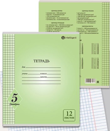 Тетрадь 12л. (клетка) INTELLIGENT DM-12230 "Пятерка" зеленая, обложка- мелованный картон, с таблицей