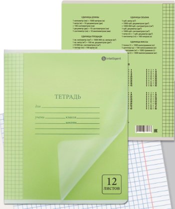 Тетрадь 12л. (клетка) INTELLIGENT DO-9600 "Классика" зеленая, пластиковая обложка, с таблицей умноже