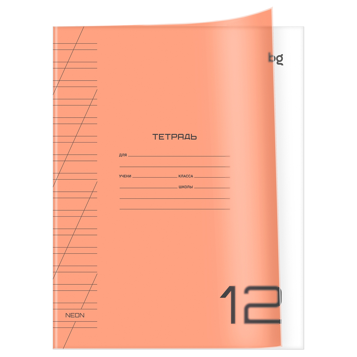 Тетрадь 12л., косая линия BG "Однотонный. Неон", пластиковая обложка, неон оранжевый