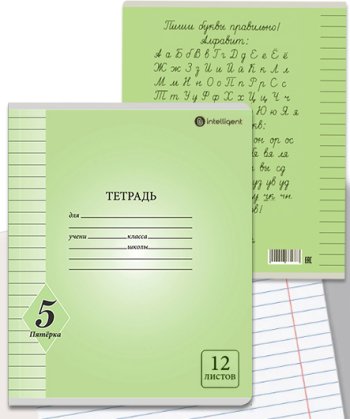 Тетрадь 12л. (линейка ) INTELLIGENT DM-12100 "Пятерка" зеленая, обложка- мелованный картон, с алфави