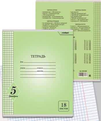 Тетрадь 18 л. (клетка) INTELLIGENT DM-15000 "Пятерка" зеленая, обложка мелованный картон