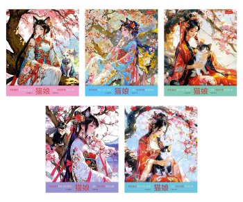 Тетрадь 48 л. Хатбер скоба "Neko-Neko" клетка, 5 диз.в блоке, пластиковая обложка с печатью тиснение