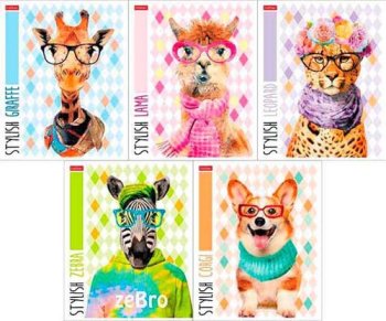 Тетрадь 48 л. Хатбер скоба "Stylish animals" клетка, 5 дизайнов в блоке, тиснение, скругл.углы