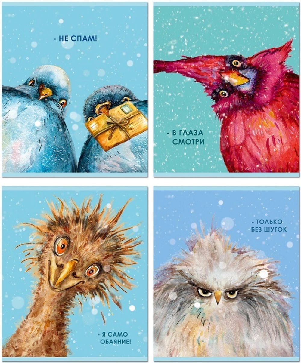 Тетрадь А5 48л кл. Полином "Птицы" УФ-лак, 4 дизайна