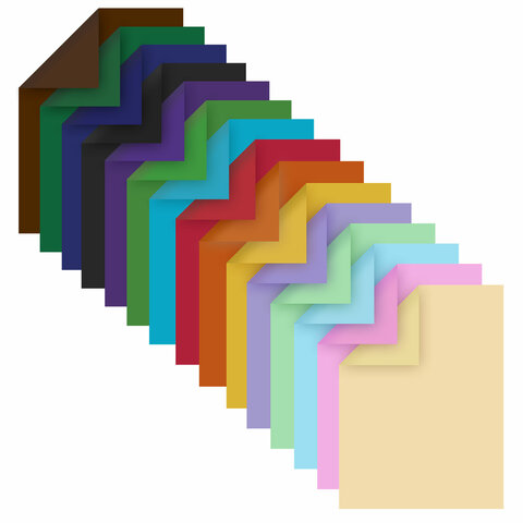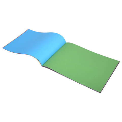 Немелованная двусторонняя цветная бумага окрашивается непосредственно в процессе изготовления и обладает плотностью 80 г/м2. Набор включает 48 листов формата А4 (210х297 мм) в 16 разнообразных и насыщенных однородных цветах. Листы скреплены при помощи альбомной склейки, легко режутся и сгибаются.