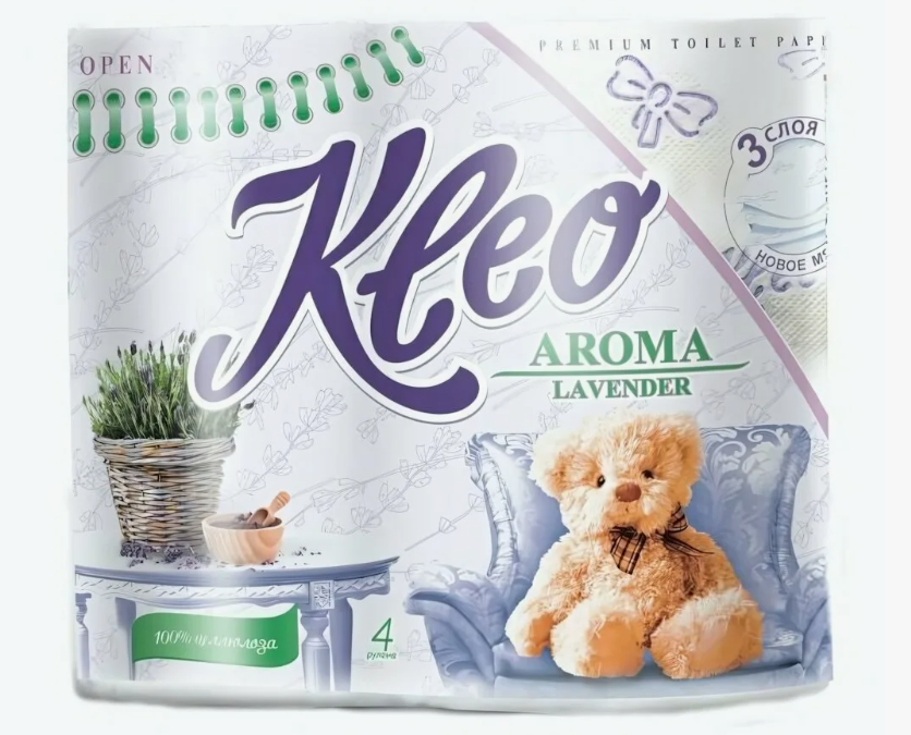 Туалетная бумага "Мягкий знак" 4 рул./уп. "Kleo" 3-сл. белая Лаванда