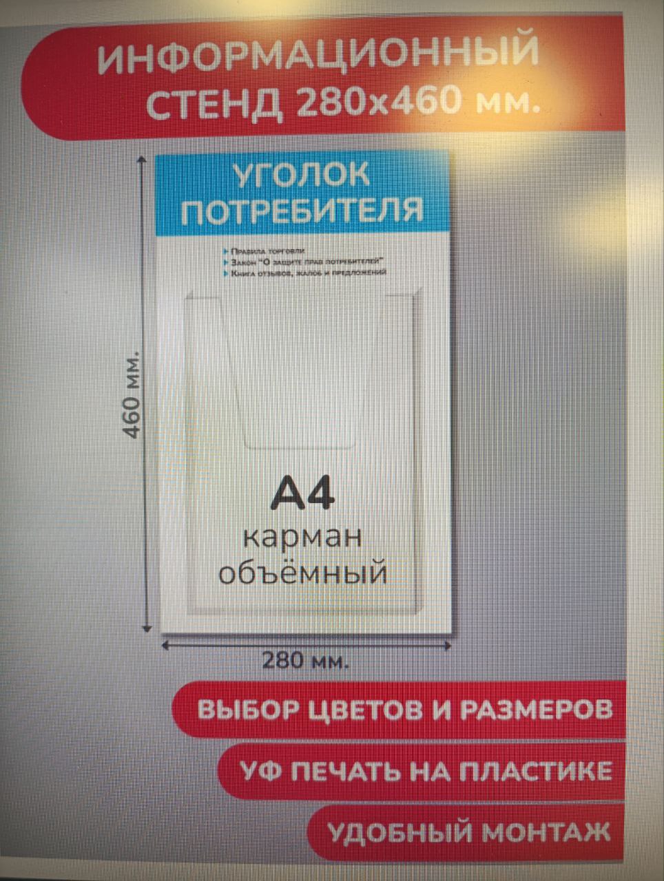 Уголок потребителя, 28х46 см., 1 объемный карман А4 (стенд информационный, доска информационная, уго