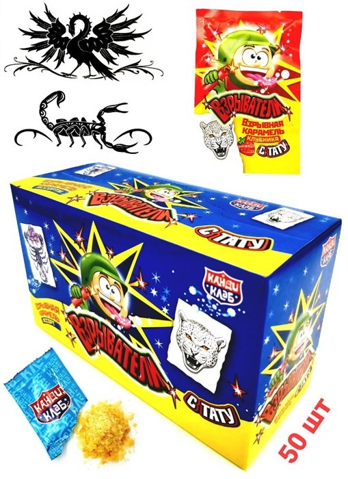 Взрывная карамель Взрыватели с татуировкой ассорти (Канди Клаб) (CAR093) 2 гр*12 бл*50 шт