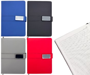 Записная книжка А5 96л. DN-73 клетка, матовая твердая обложка из экокожи, с магнитным клапаном