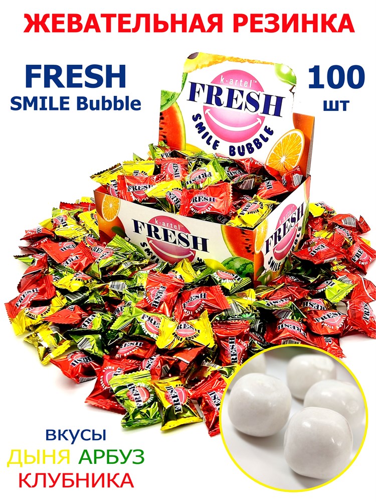 Жевательная резинка драж. FRESH SMILE Bubble Ассорти с жидким центром (17h.xz0) 3 гр*20 бл*100 шт