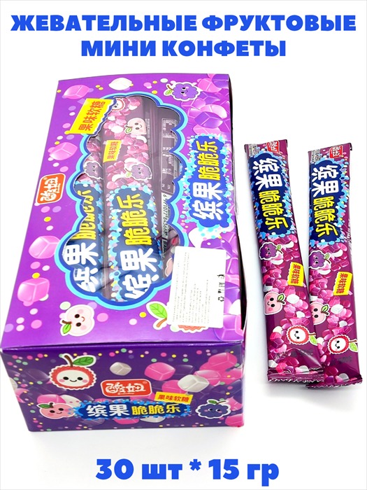 Жевательные фруктовые мини конфеты Виноград-персик Suan Niu (41649) 15 гр*1 кор х 20 бл х 30 шт